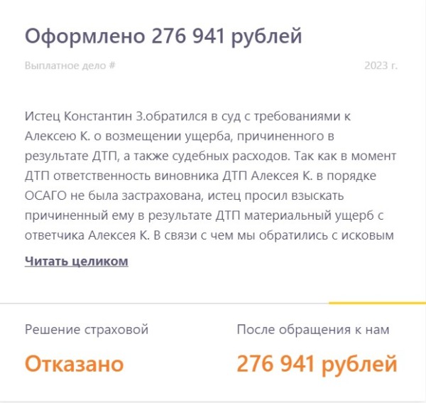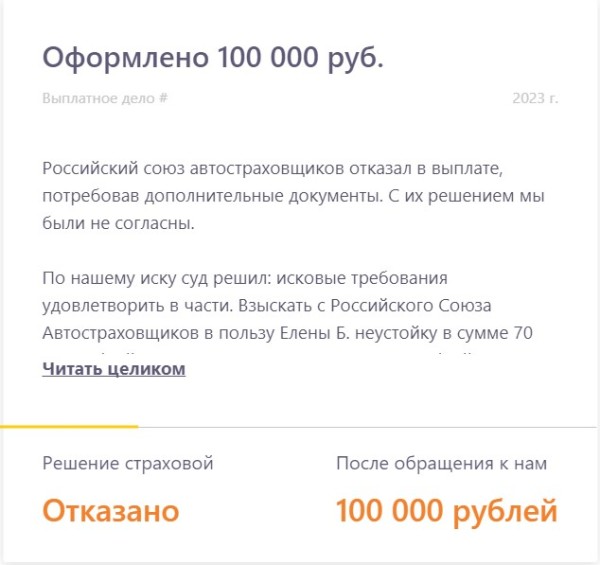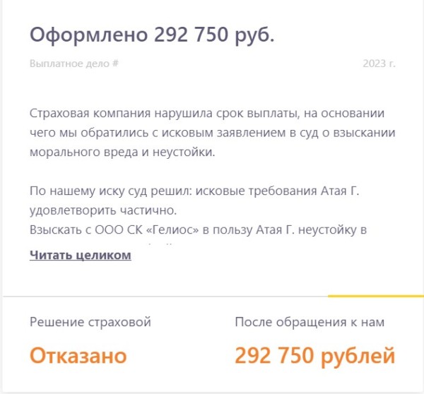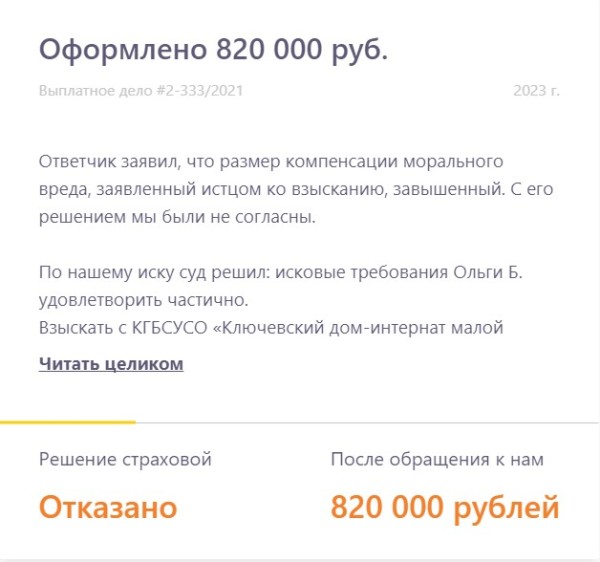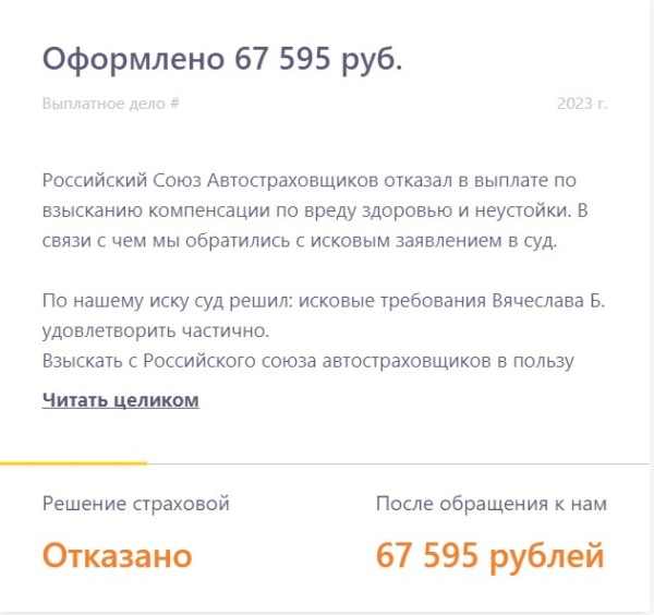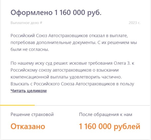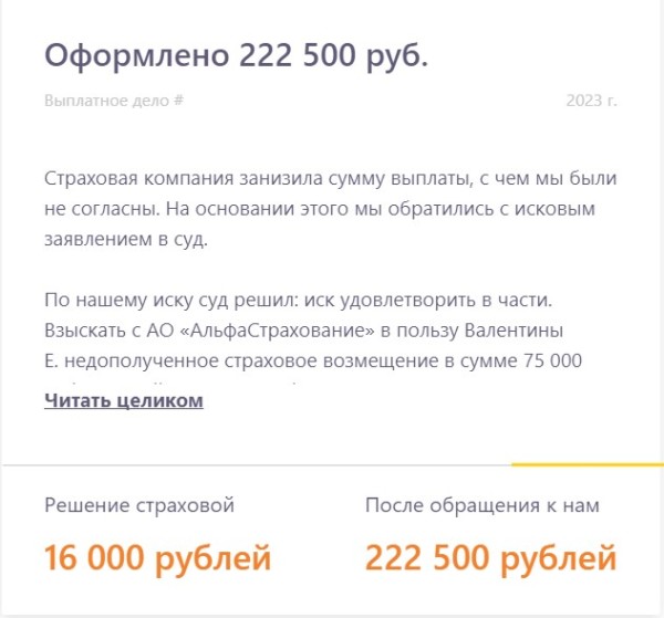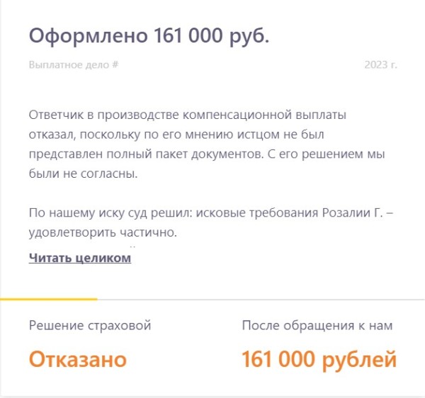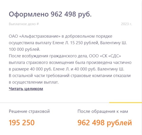 Рассказываем о реальных выплатах, в которых страховая компания занизила выплату или отказала в них. Показываем в цифрах результат работы