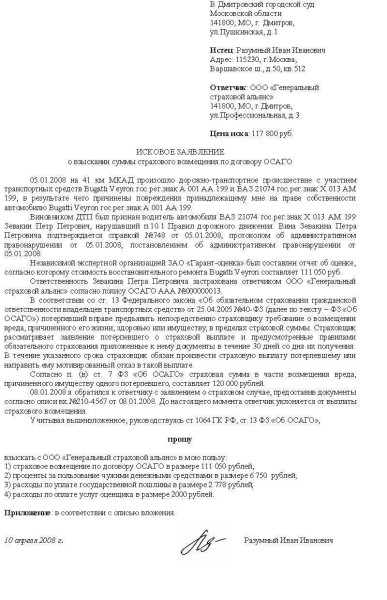 Рис.1 Пример искового заявления в суд