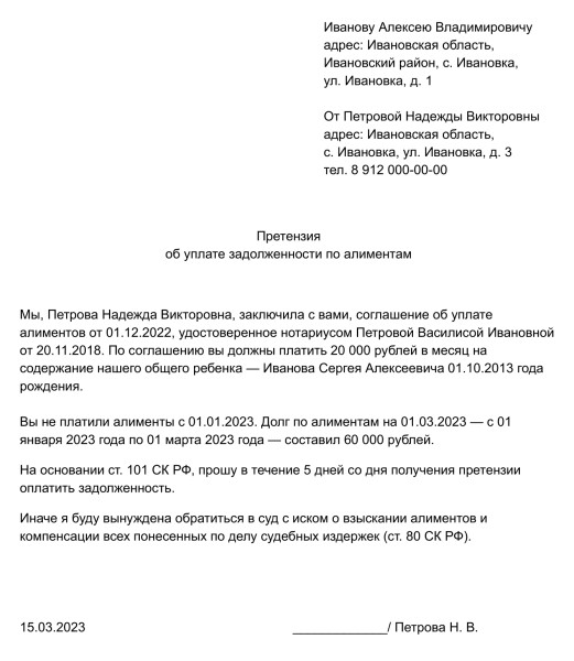 Существует ряд споров, подлежащих урегулированию на досудебном уровне. Подача иска на алименты возможна без досудебных разбирательств, однако, есть некоторые тонкости. Если между родителями заключено соглашение о выплате алиментов, но его условия не исполняются, то тогда нужно оформлять претензию.