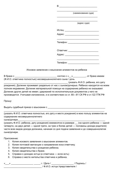 Из документа не понятно, имеет ли право заявитель на получение алиментов.Во всех перечисленных ситуациях возможна подача иска в судебный орган. Суд в трехдневный срок с момента поступления заявления выносит решение о возврате или отказе в принятии документов. Заявление может быть оставлено без движения в случае несоблюдения истцом всех требований по процедуре подачи документов в судебный орган. Возможен также вариант, когда судебный орган обращается с просьбой к заявителю скорректировать недочеты в иске, и после исправления возвращается к рассмотрению пакета документов. Судебный орган рассматривает иск и выносит решение в течение месяца с даты поступления документов.