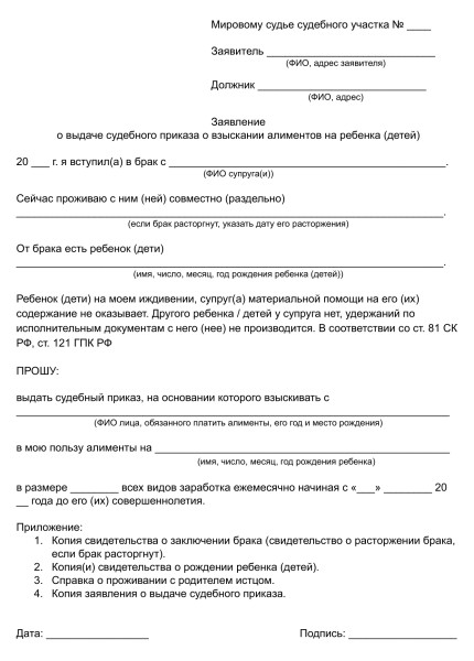 Исковое заявление, которое подается в органы мирового суда. После вынесения приказа документ направляется в адрес должника. Согласно приказу определяется сумма алиментов. Приказ имеет одинаковую юридическую силу с исполнительным листом.