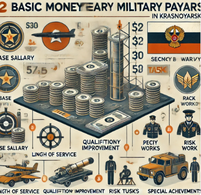 Для всех военнослужащих, независимо от их статуса — срочная служба или контрактная, государство устанавливает денежное довольствие, которое состоит из нескольких основных частей. Выплаты военнослужащим в Красноярске включают: