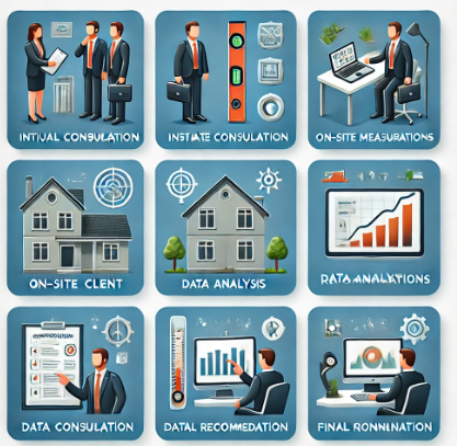 После анализа документации специалисты компании выезжают на объект для проведения визуального осмотра и выполнения необходимых замеров. На этом этапе применяется современное диагностическое оборудование, включая тепловизоры для выявления зон потерь тепла, ультразвуковые приборы для проверки прочности материалов и лазерные уровни для точного замера параметров конструкций. Такой подход позволяет получить исчерпывающие данные о состоянии объекта и его конструктивных элементов.