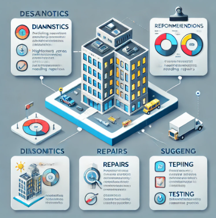 Для объектов, которые находятся в эксплуатации длительное время, мы предлагаем меры по профилактике будущих проблем. Например, мы можем порекомендовать регулярное обслуживание и осмотр инженерных систем, утепление стен и полов или защиту фасадов от атмосферных воздействий, что позволит продлить срок службы здания.