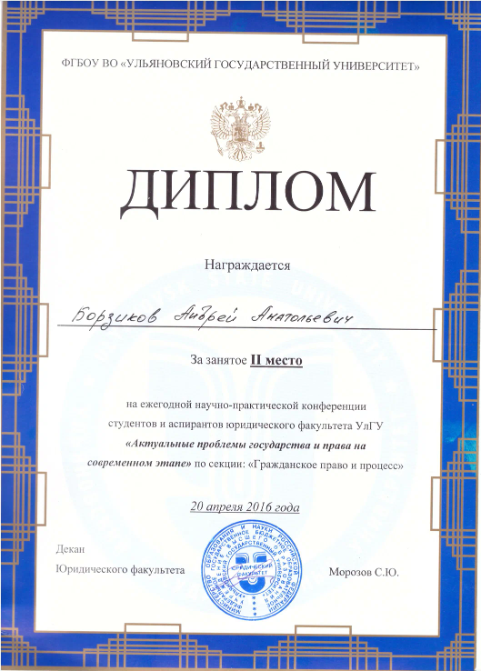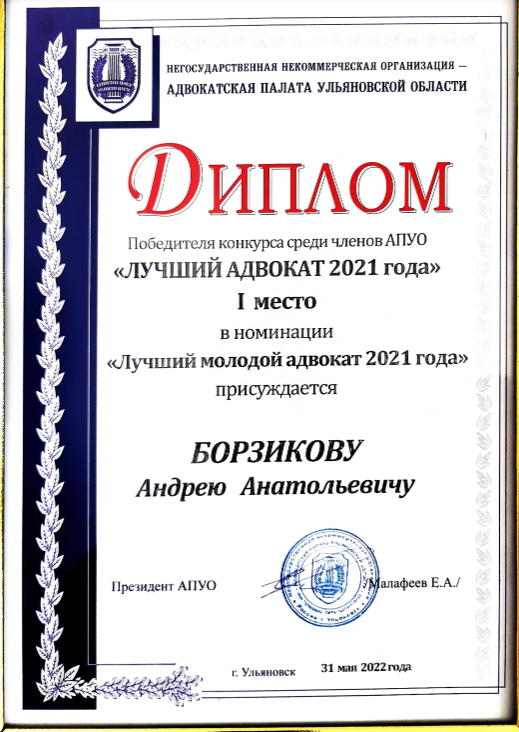Равным образом осуществляю практику в плоскости ГПК и КАС по спорам имущественного характера (наследственные дела, раздел имущества супругов, взыскание убытков, деликты) и в плоскости оспаривании решений, действий (бездействия) органов государственной власти. Отдельный сектор работы - представление интересов потерпевших по уголовным делам, восстановление нарушенных имущественных интересов. Осуществляю абонентское обслуживание юридических лиц и ИП в текущей хозяйственной деятельности в рамках аутсорса. Призер и победитель ряда профессиональных конкурсов в юриспруденции: - Юрист года 2023 года в номинации "Лучший молодой юрист" по версии Ассоциации Юристов России (УРОО). - Лучший молодой адвокат 2022 года (АПУО), 1 место - Лучший молодой адвокат 2021 года (АПУО), 1 место - Лучший молодой адвокат 2020 года (АПУО), 1 место - Лучший молодой адвокат 2019 года (АПУО), 3 место.