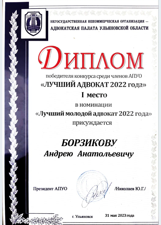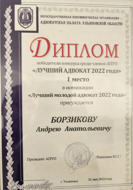 Я - Адвокат Борзиков Андрей Анатольевич. Руководитель Филиала МКА Партнер Групп в Ульяновске. Опыт работы в адвокатуре с 2016 года. Регистрационный номер 73/1245 Более 200 успешно выигранных судебных дел. Осуществляю ведение судебного представительства на всей территории РФ, ключевые регионы - Московской округ, ПФО. Вместе с командой адвокатов осуществляю практику по ключевым направлениям в плоскости экономических споров в арбитражном процессе (споры по исполнению, толкованию договоров, убыткам и деликтам), банкротному процессу (представление интересов должника, кредиторов в банкротстве граждан, юридических лиц и ИП, спорах по субсидиарной ответственности контролирующих лиц), экономических преступлений и иных преступлений имущественного характера.